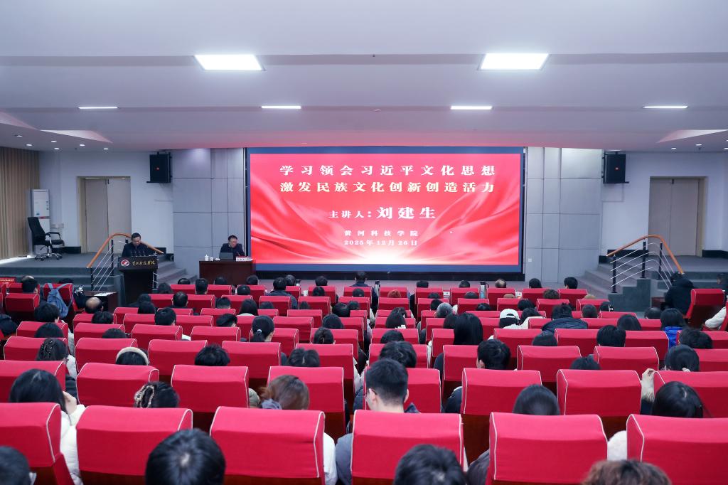 副校长于向东在报告会总结中指出,本次报告会既是一次习近平文化思想的理论学习会,也是学习贯彻党的二十届四中全会精神的辅导会,同时也是思政课集体备课与思想政治教育的大课堂。他强调,党员干部和广大师生要联系实际,深入学习习近平新时代中国特色社会主义思想,贯彻落实习近平文化思想,把党的思想引领力,转化为推动学校工作的强大动力。他提出三点希望:一要深学细悟,把握思想精髓。把学习贯彻习近平新时代中国特色社会主义思想、习近平文化思想作为重要政治任务,与学习贯彻党的二十大和二十届四中全会精神密切结合起来,做到学思用贯通、知信行统一。二是要立德树人,强化价值引领。将学习领会贯彻落实习近平文化思想融入学校三全育人各项工作,融入教育教学全过程,特别要发挥好课堂教育教学主渠道作用。三要拼搏奋进,推进学校发展。加强文化自信培育,重视学校文化建设,将黄科大精神融入学校改革发展各方面,转化为推动学校建设一流应用科技大学的强大动力,在服务社会主义文化强国建设中展现黄科大人的责任与担当。