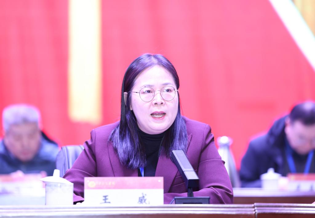 校党委副书记赵会利讲话。她首先指出,全体代表充分发扬主人翁精神,参与学校民主管理、民主监督、民主决策,彰显了全体代表深厚的爱校情怀、真诚的荣校愿望和强烈的使命担当。